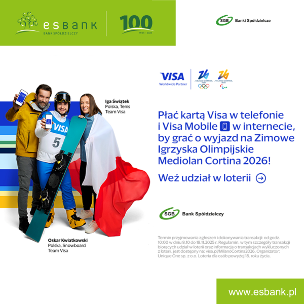 Organizator: Unique One sp. z o.o. Loteria jest przeznaczona dla osób, które ukończyły 18 lat. Lista transakcji wykluczonych z loterii jest dostępna w regulaminie na https://www.visa.pl/campaign/milanocortina2026.