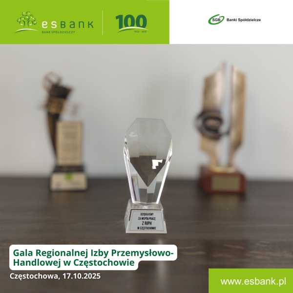 2025-10-24Radomszczańskie Forum Przedsiębiorczości oraz Gala Jurajskiego Produktu Roku w Częstochowie to ważne wydarzenia dla lokalnego biznesu – i dla ESBANKU Banku Spółdzielczego, który w tym roku uczestniczył w nich nie tylko jako partner, jako członek izb, ale także laureat wyróżnień za współpracę i wsparcie przedsiębiorczości.
