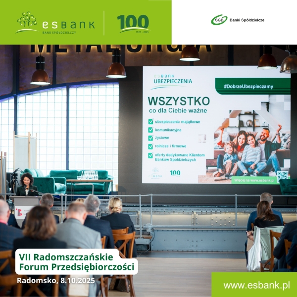 Forum, które w tym roku zgromadziło rekordową liczbę uczestników, było okazją do rozmów o przyszłości biznesu – cyfryzacji, kompetencjach przyszłości i wyzwaniach globalnych. Gościem specjalnym wydarzenia był ekonomista Marek Zuber. W jednej z sesji tematycznych wystąpili przedstawiciele ESBANKU: Joanna Komala (Dyrektor ds. Bancassurance) oraz Mariusz Ciupiński (Kierownik Wydziału Marketingu i Produktów Bankowych), prezentując ofertę wsparcia dla firm pod hasłem „Rozwiń swój Biznes z ESBANKIEM”.