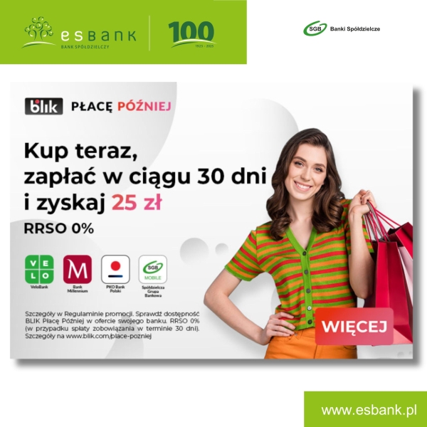 - Korzystając z promocji „Kup teraz, zapłać mniej z BLIKIEM Płacę Później” zyskasz 25 zł.