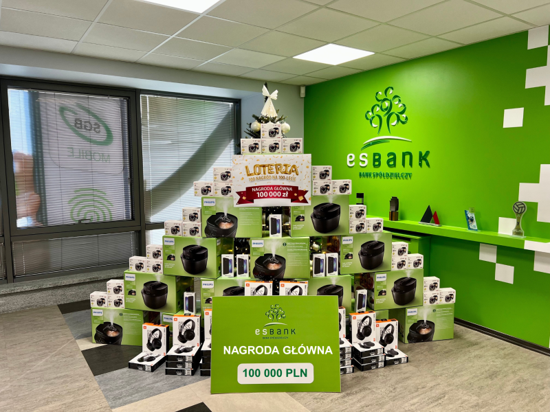 2025-12-19Dobiega końca wyjątkowy dla ESBANKU Banku Spółdzielczego rok jubileuszu 100-lecia działalności. Świętowanie 100 lat trwałych relacji, misji wspierania kolejnych pokoleń „ludzi stąd” oraz rozwoju nowoczesnego, społecznie odpowiedzialnego biznesu swoją kulminację ma w grudniu 2025. Wszystko za sprawą rozstrzygnięcia loterii „100 nagród na 100-lecie” oraz premiery filmu wizerunkowego #ESBANKna100-lecie.