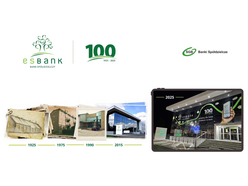 Rok jubileuszowy to czas podsumowań, ale i refleksji nad teraźniejszością i przyszłością. ESBANK od 1925 roku rozwija się oraz wspiera gospodarczy i społeczny rozwój regionu, w którym działa, łącząc decyzje biznesowe z odpowiedzialnym podejściem do ryzyka i długofalową perspektywą. Dzięki temu zbudował na lokalnym rynku silną pozycję, opartą na stabilnych fundamentach finansowych i zaufaniu Klientów. Wyniki ostatnich lat pokazują, że taki model działania pozostaje aktualny także w erze cyfrowej. Bank wdraża nowoczesne kanały obsługi, usługi mobilne i nowe rozwiązania dla firm, nie tracąc przy tym z oczu tego, co dla spółdzielczości najważniejsze: relacji z ludźmi i poczucie odpowiedzialności za lokalną społeczność.